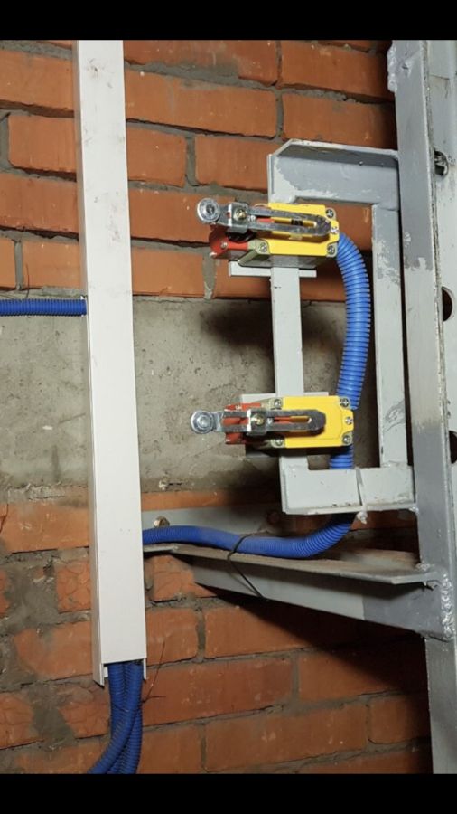- Два концевых выключателя. Они отключают электропитание двигателя, когда кабина опускается выше или ниже установленных границ на 200 мм.